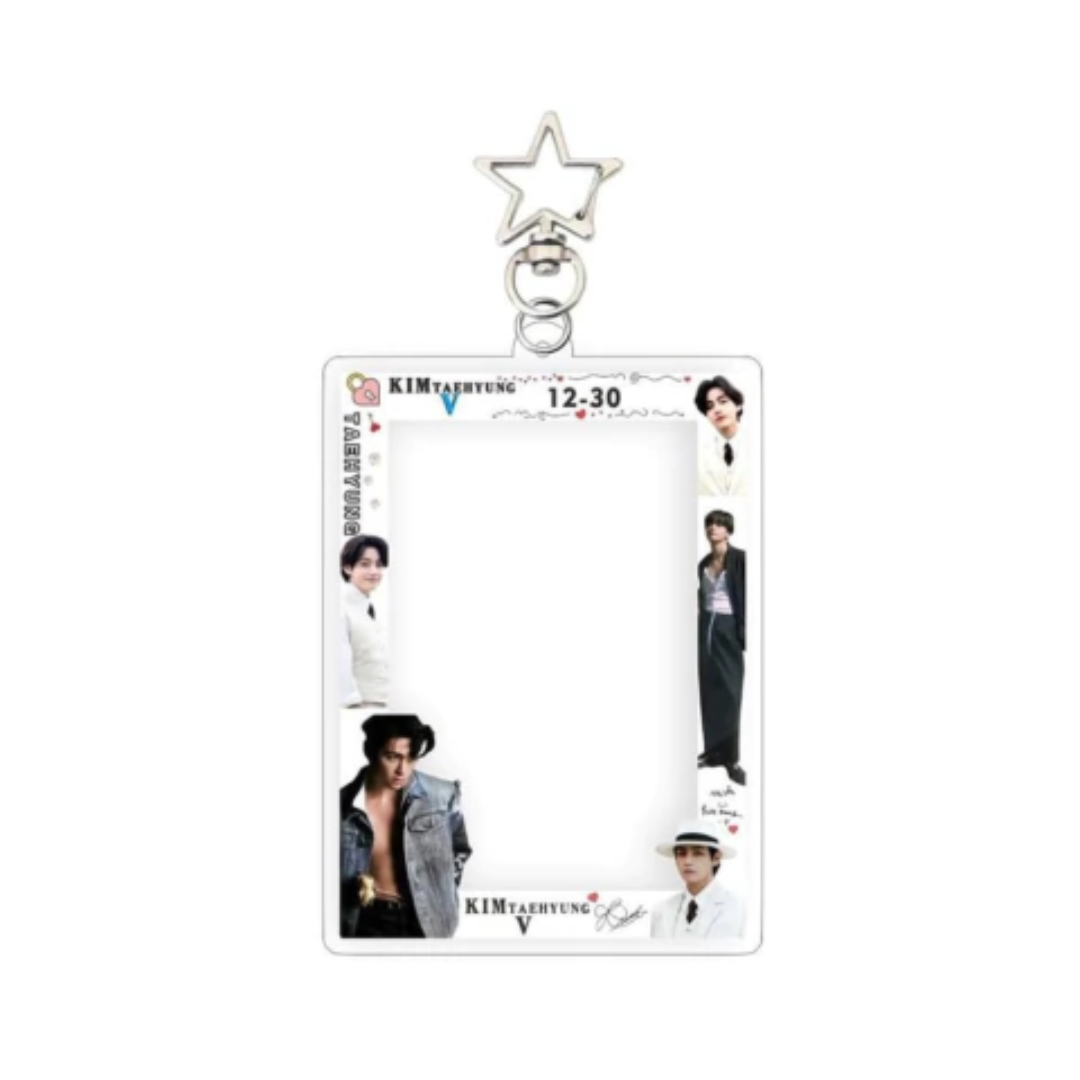 Cardholder fanmade fabricado en acrílico resistente de alta durabilidad con diseño en V de BTS, es ligero y práctico para uso diario o exhibición. Es un producto de alta rotación dentro del mercado K-Pop y cultura fandom, ideal para reventa, eventos, dinámicas, freebies o colecciones.