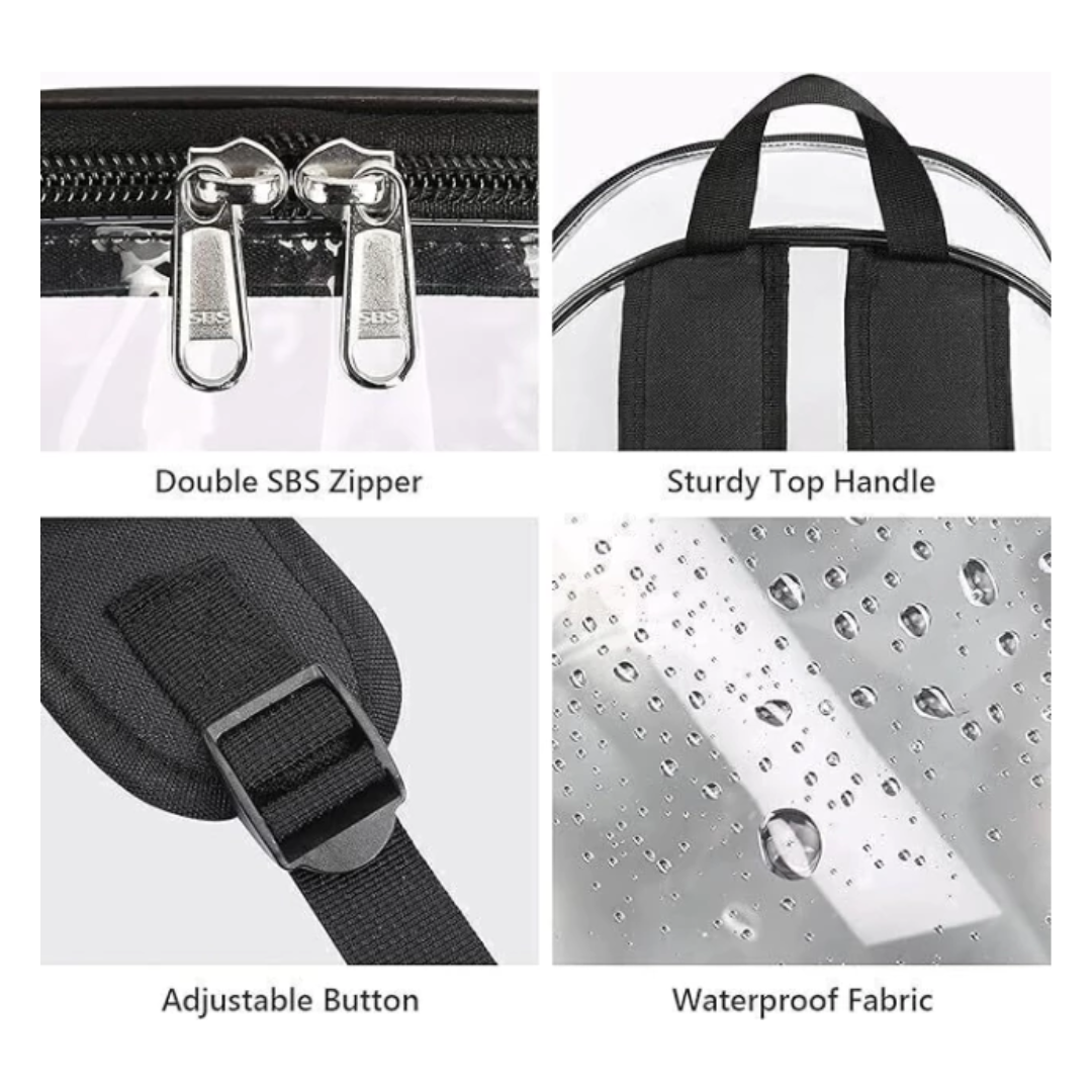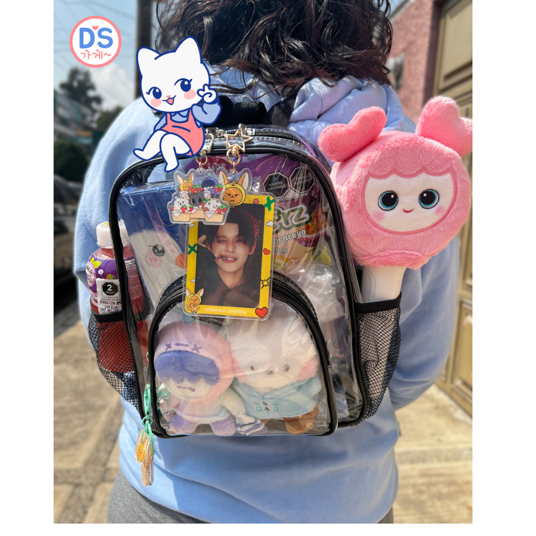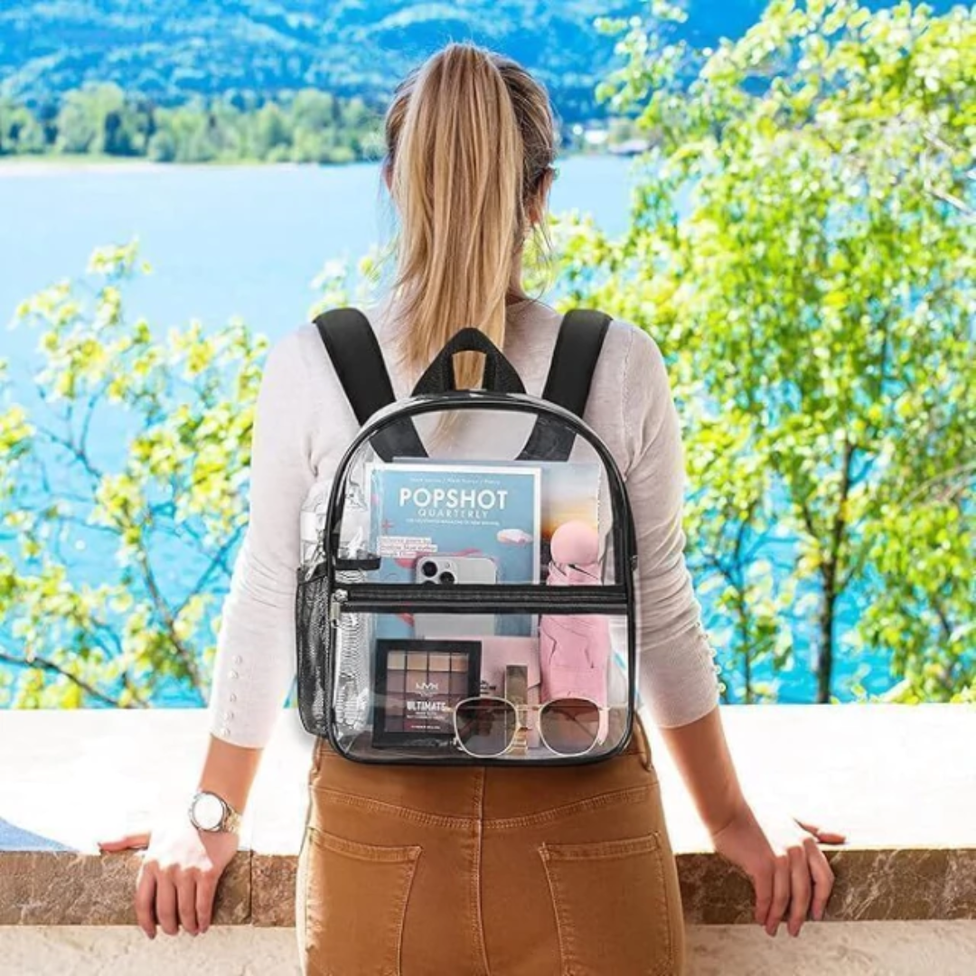 Mochila mediana transparente bordes negros